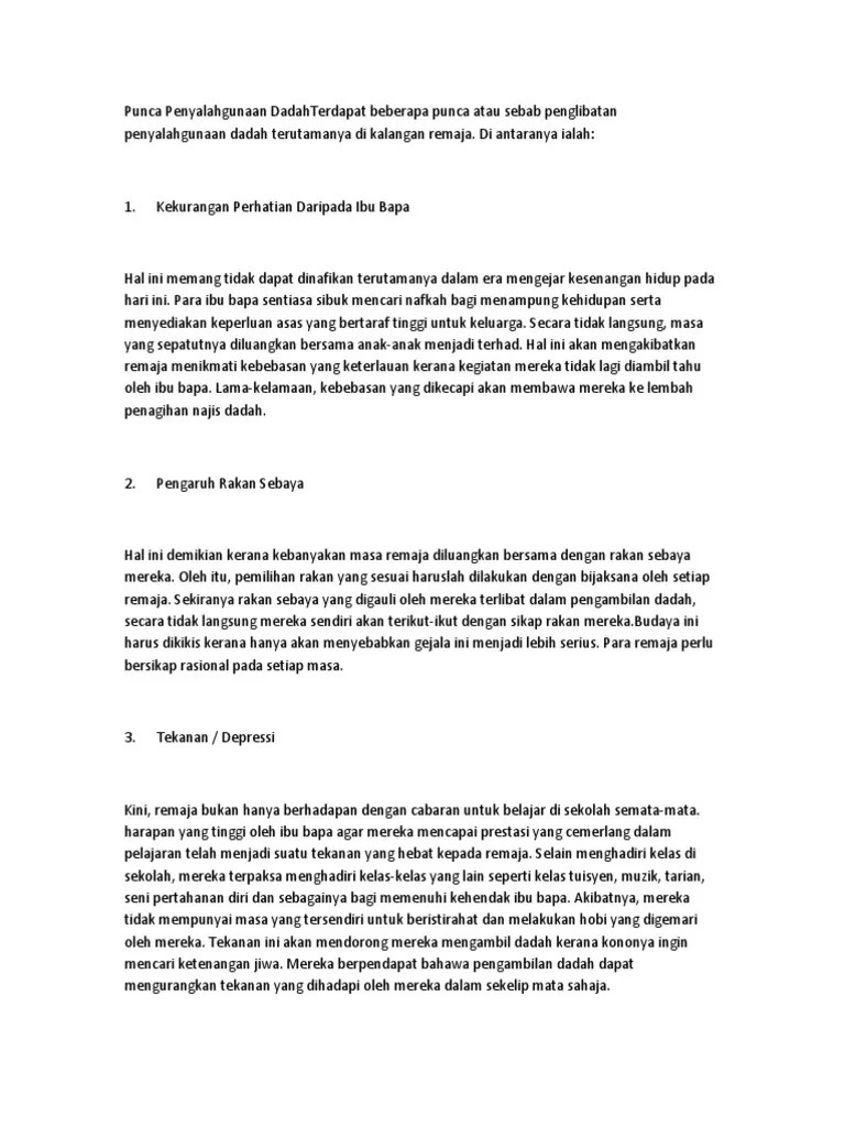 Pembuangan bayi, khalwat, rogol dan penyalahgunaan dadah. Takrifan kesihatan awam, komunikasi massa dan penggunaan vernakular, takrifan perubatan, dan politik dan takrifan jenayah kehakiman. Kewujudan kumpulann pelampau agama 4. Aug 15, 2020 · 57 penyalahgunaan dadah yang kian berleluasa boleh mendatangkan kesan yang amat membimbangkan. Mar 04, 2020 · istilah lain penyalahgunaan dadah masuk di bawah empat kategori utama: